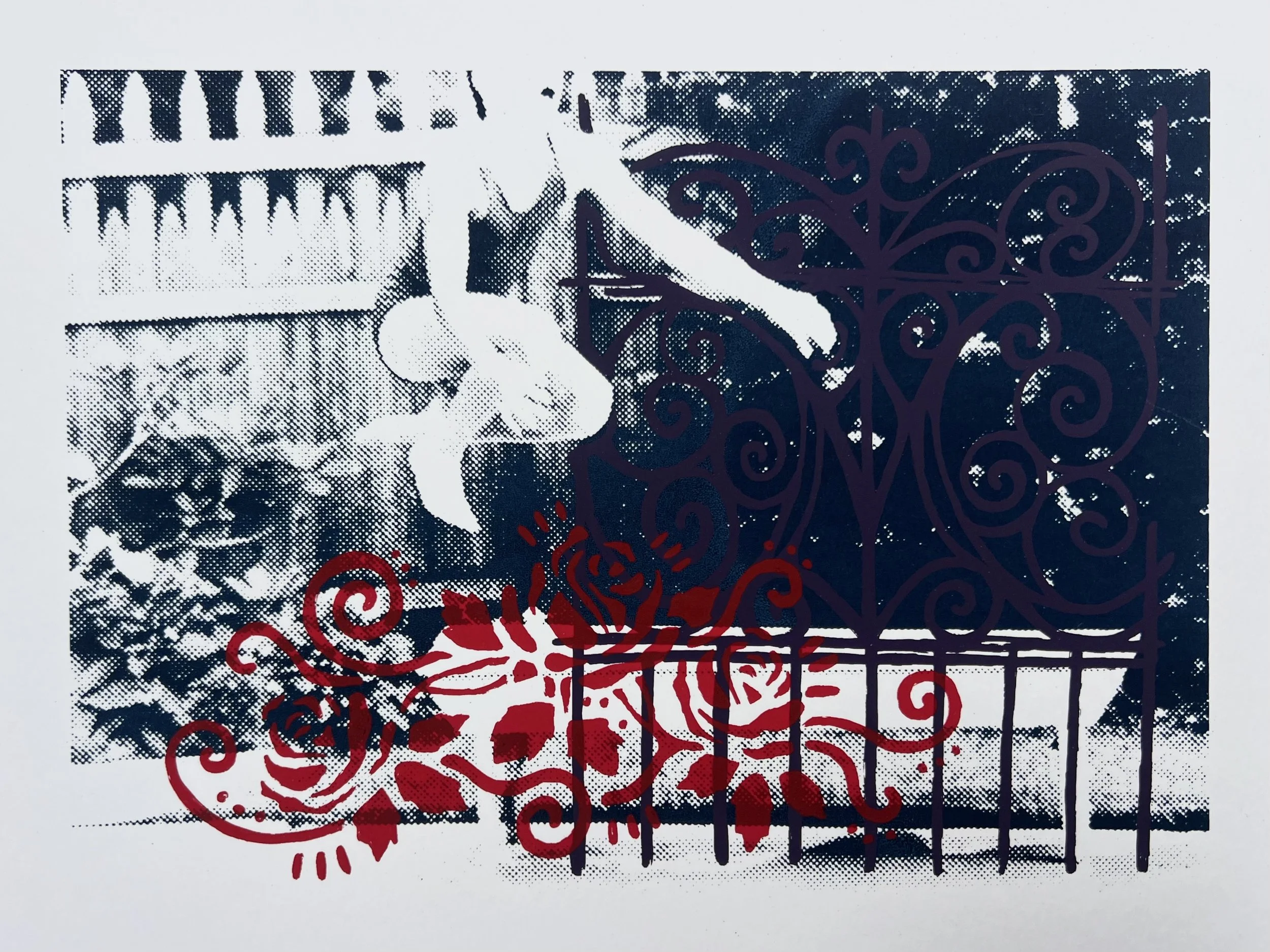 Honey Bunny , 2023. 4 layer screenprint and collage, 10 edition, 12 x 18”