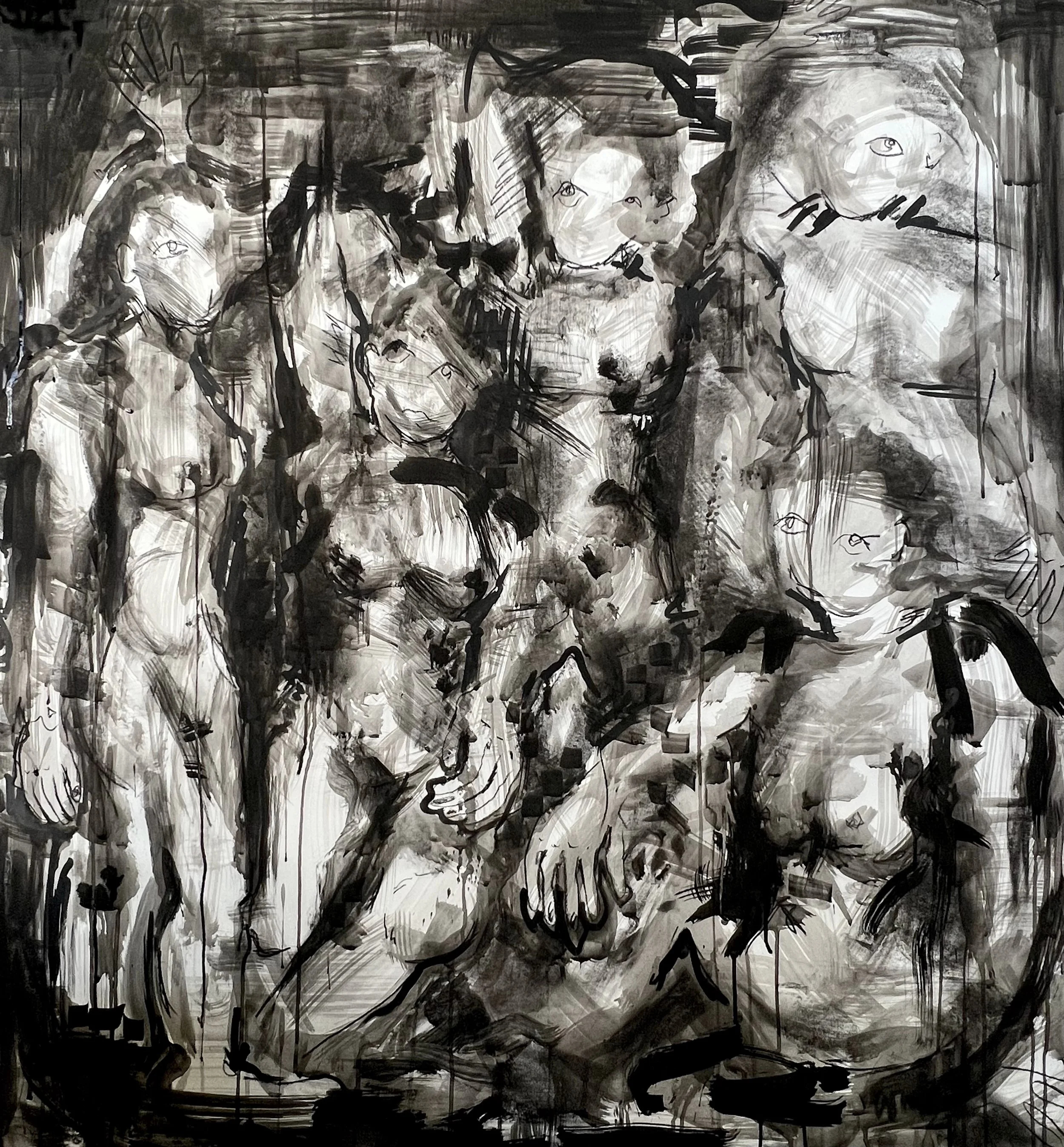 The Young Women, 2023. Sumi ink and charcoal on paper, 36 x 40”